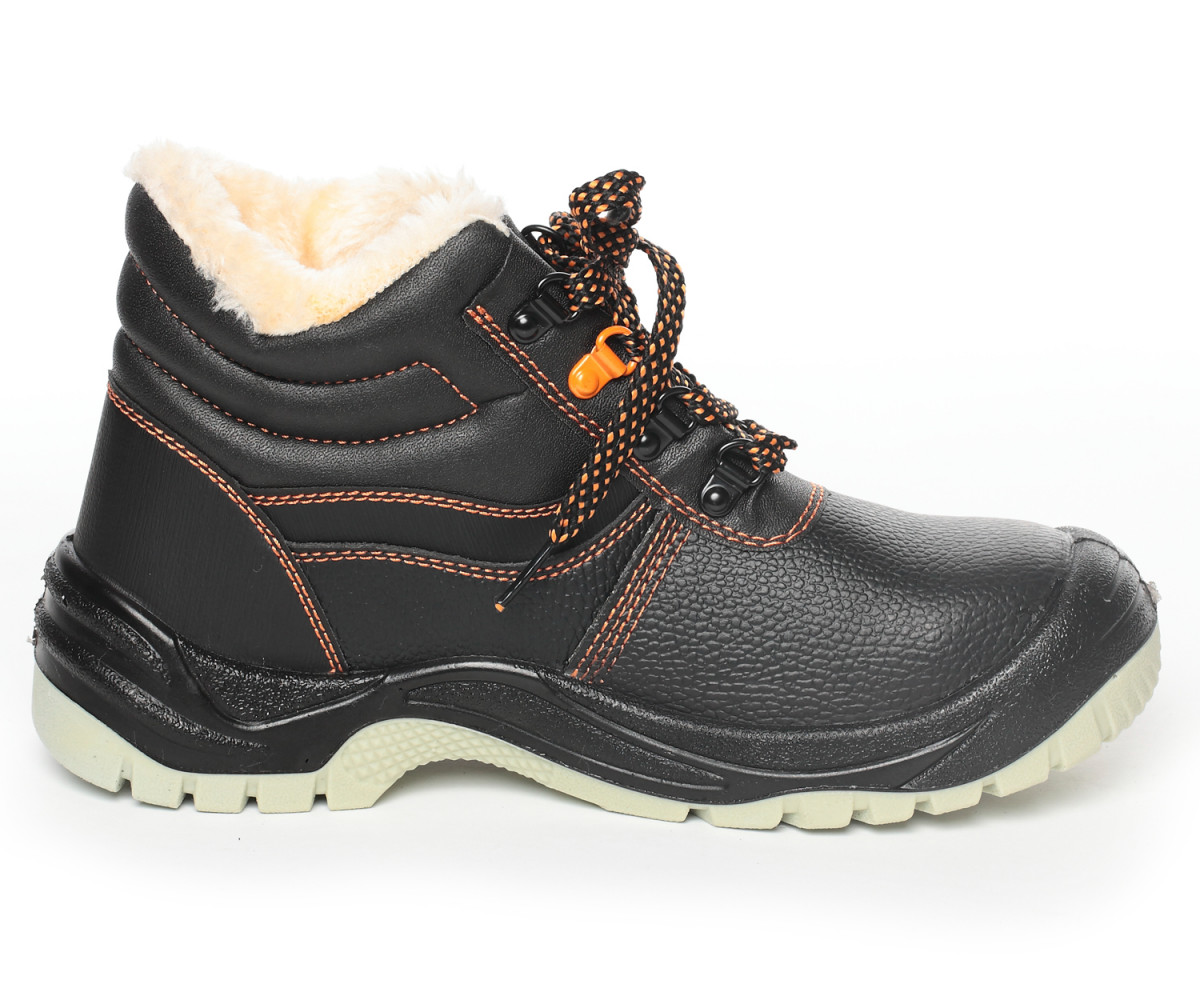 Верх обуви выполнен из натуральной кожи. Рабочая обувь из натуральной кожи долговечна, устойчива к повреждениям, комфортна в носке. Натуральная кожа обладает воздухопроницаемыми свойствами, не дает ногам потеть. Фиксируется обувь на ноге с помощью шнурков, которые плотно обхватывают стопу, улучшая комфорт ношения. Утеплитель из искусственного меха хорошо держит тепло, рассчитан на температурные режимы до -18 °C. Противоударный металлический подносок защищает от ударов в носочной части энергией 200 Дж. Металлическая антипрокольная стелька дополнительно защищает стопы ног от проколов, порезов, сильных ударов и прочих производственных травм.