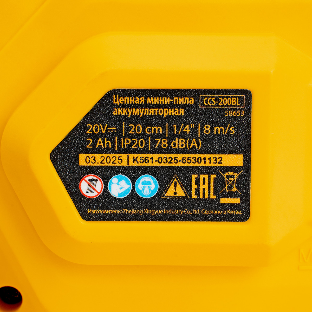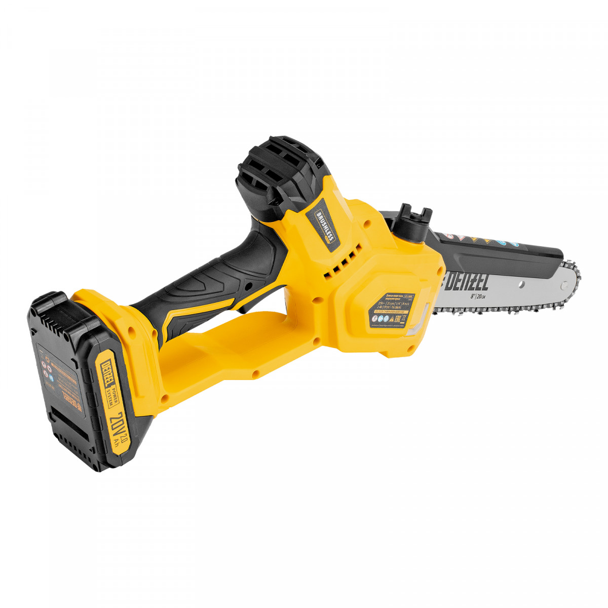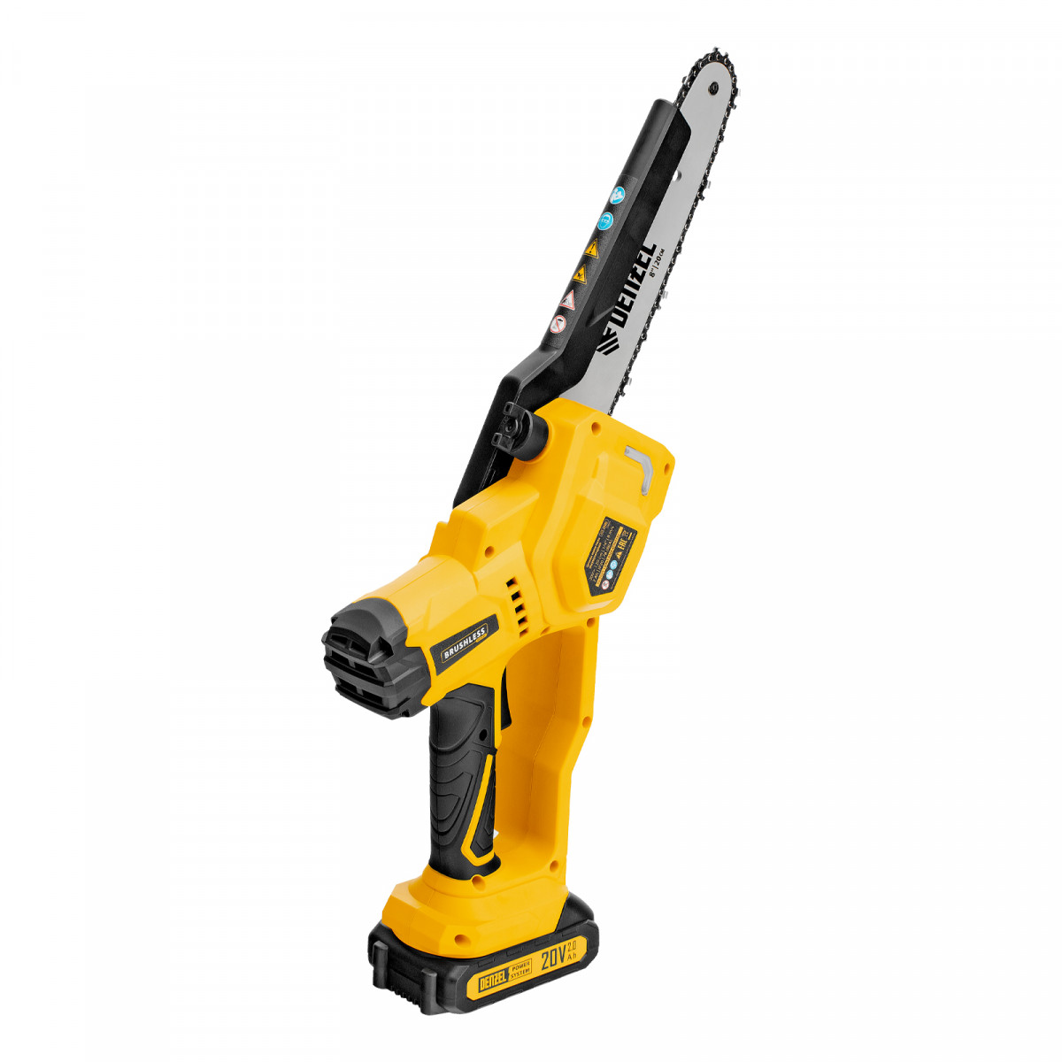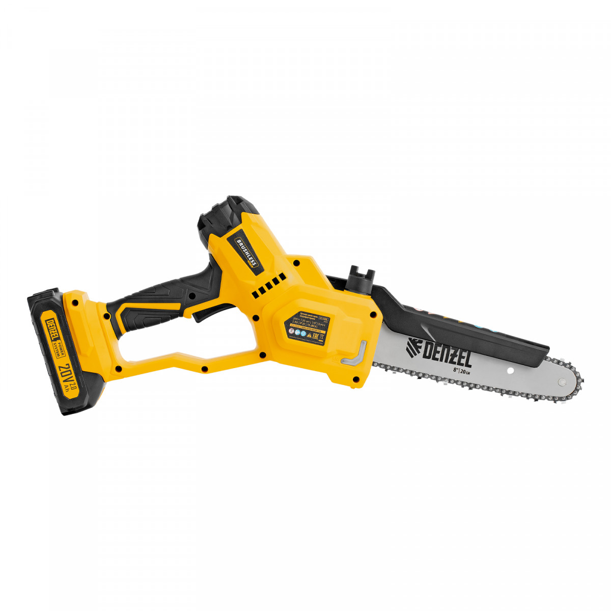 Цепная мини-пила аккумуляторная бесщет., СCS-200BL, шина 200 мм, Li-Ion, 20 В Denzel