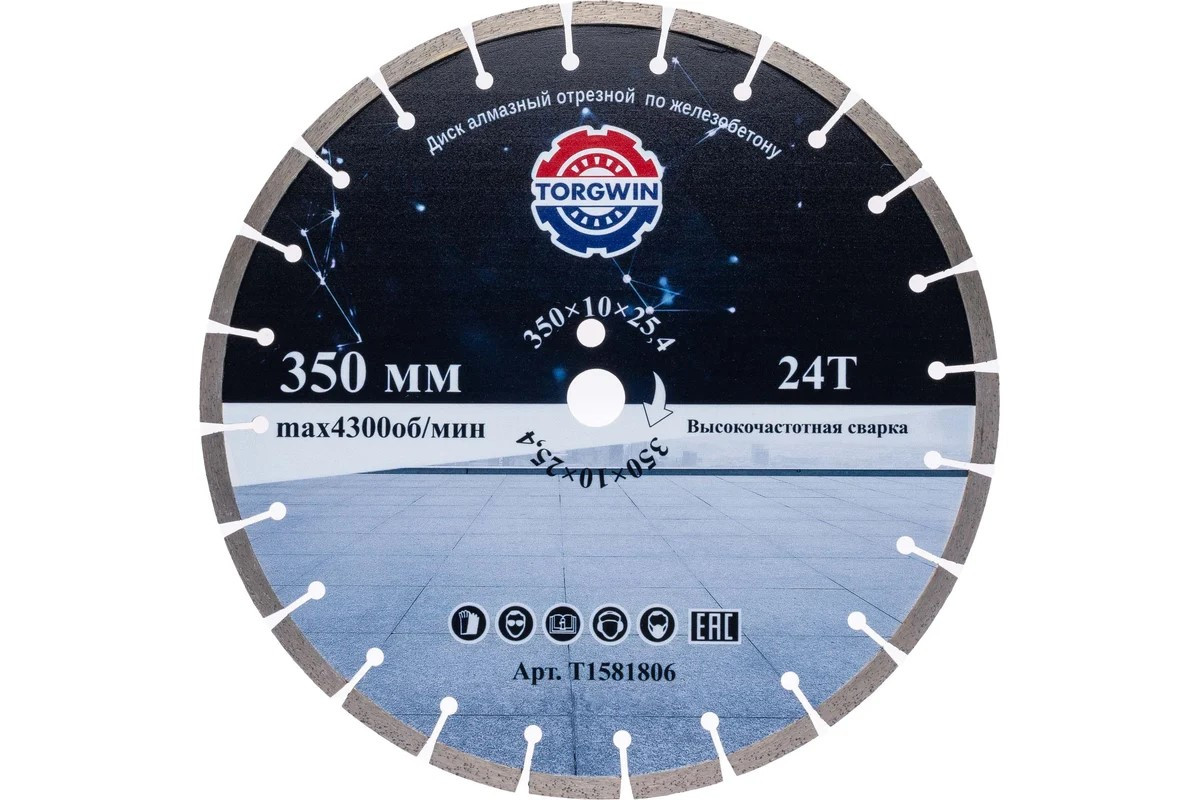 Диск 350х25,4х10х2,2 алмазный сегментный по бетону армированному TORGWIN