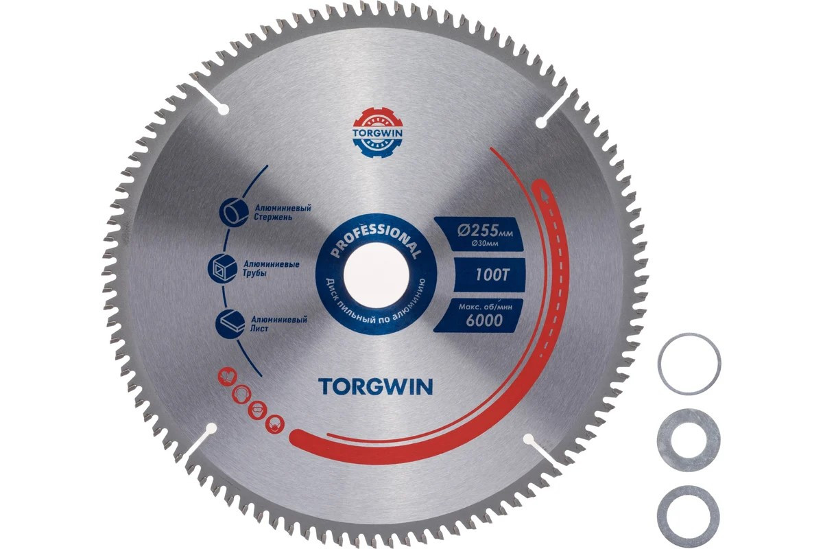 Диск пильный по алюминию 255*30 мм T100 переходное кольцо 25,4 TORGWIN