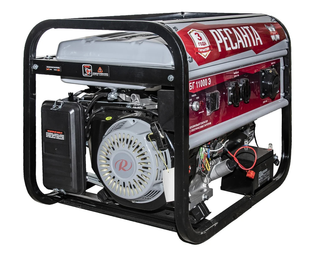 Бензиновый генератор Ресанта БГ 11000 Э – мощное и надежное устройство, способное обеспечить питанием в отсутствие электроснабжения строительную технику и частные домовладения. Повышенный ресурс работы двигателя и действующая система защиты от различных негативных факторов позволяет получить уверенность в длительном сроке эксплуатации.