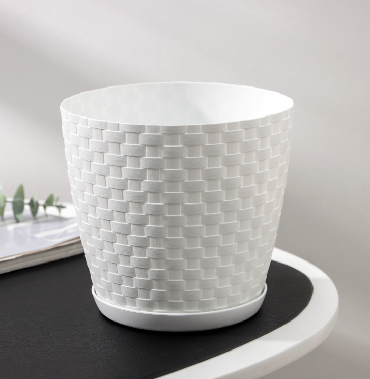 Горшок для цветов с поддоном Ротанг 2 л белый