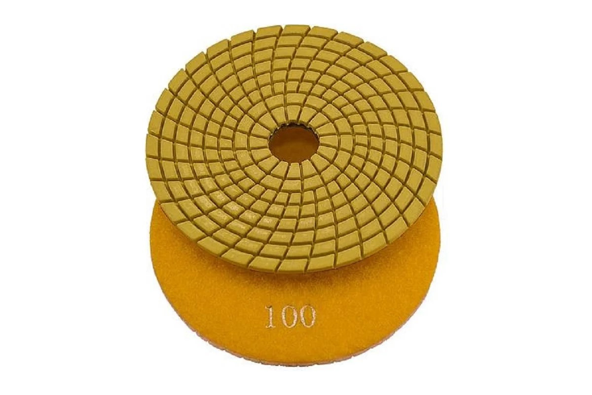 Круг шлифовальный алмазный гибкий АГШК (черепашка для мокрой полировки) 100 мм предназначен для мокрой шлифовки и полировки на больших плоскостях поверхности камня, гранита, мрамора. Изготовлен из мелкой алмазной крошки, скрепленной специальной противостираемой и термоустойчивой пластмассой. Круг обладает большой гибкостью, что немаловажно для обработки поверхностей с изгибом.