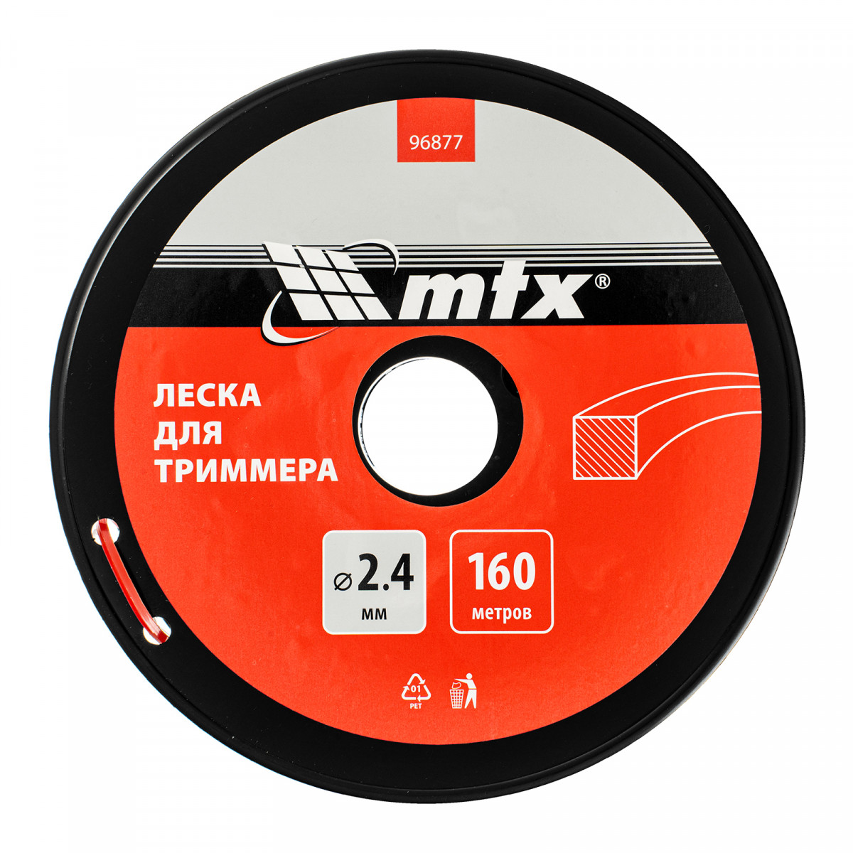 Леска для триммера квадрат 2,4 мм х 160 м, на катушке MTX