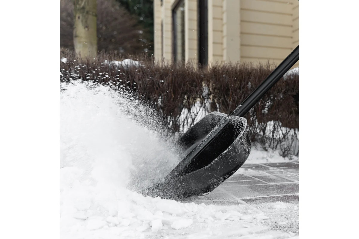 Ударопрочный поликарбонат обеспечивает долговечность и надежность лопаты при работе с снегом.