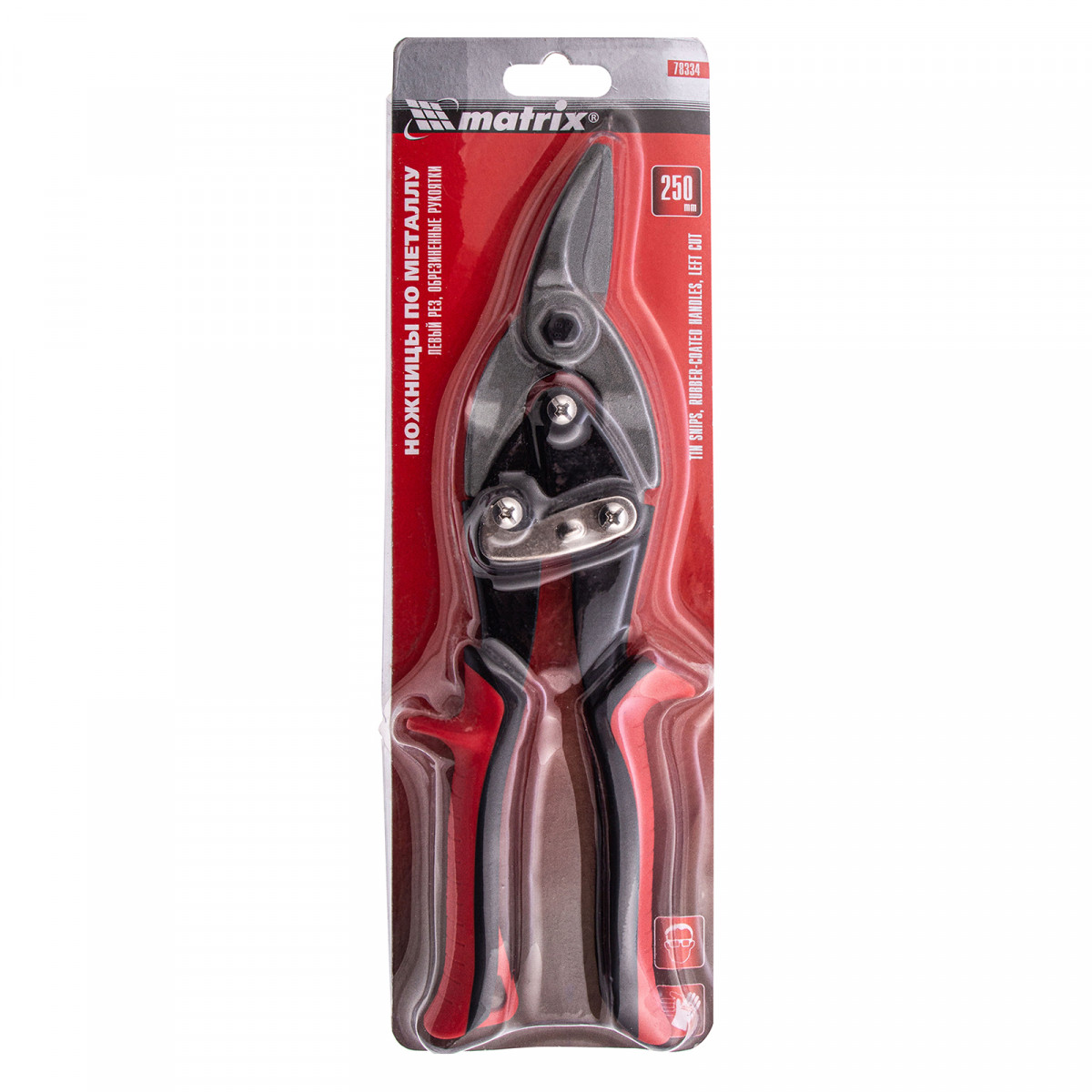 Ножницы по металлу, 250 мм, левые, обрезиненные рукоятки Matrix