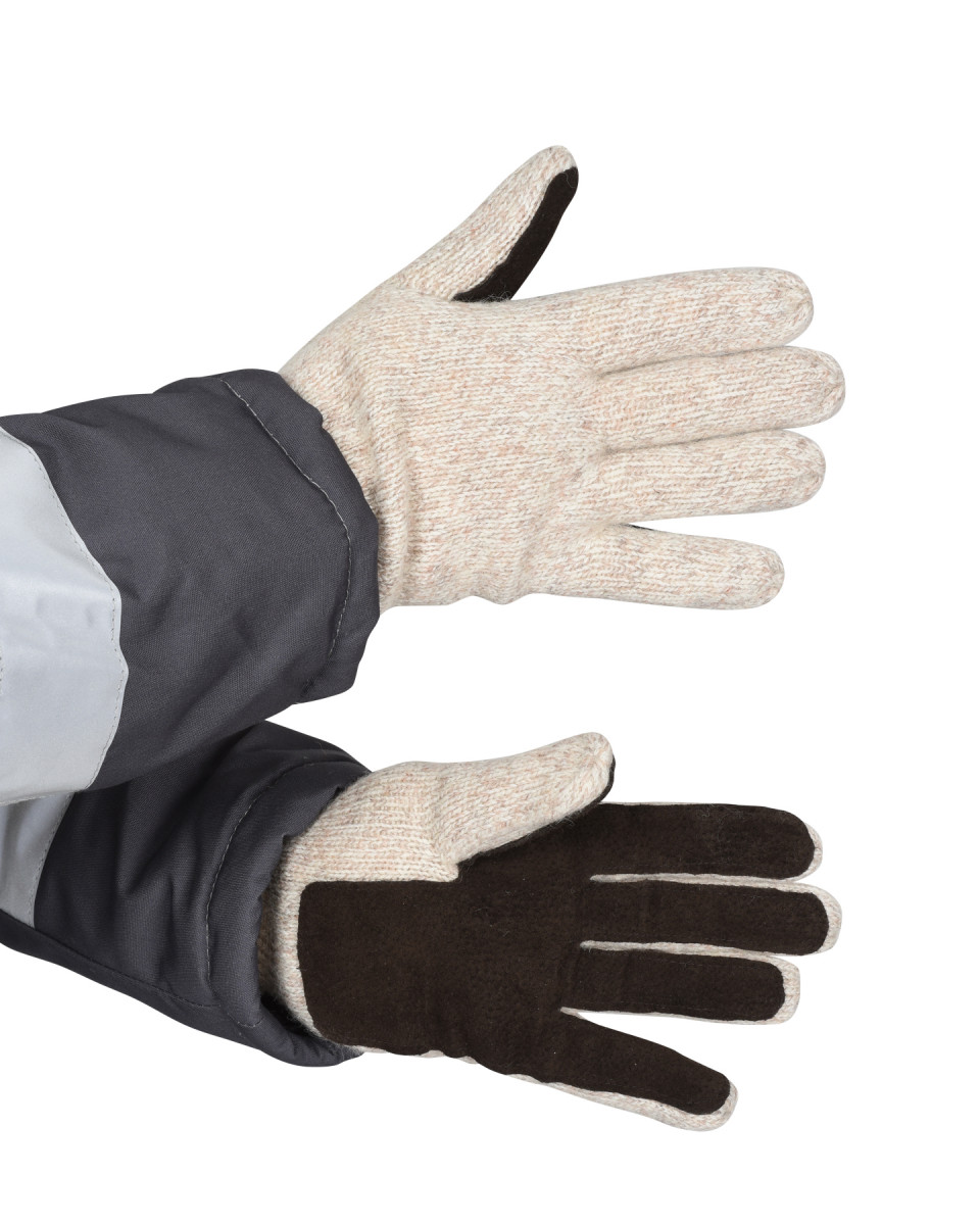 Перчатки из полушерстяной пряжи (шерсть 50%, акрил 50%) с утеплителем Тинсулейт С40 на флисовой подкладке, на ладонной стороне и пальцах с накладками из кожевенного спилка.Защитные свойства: МиТн