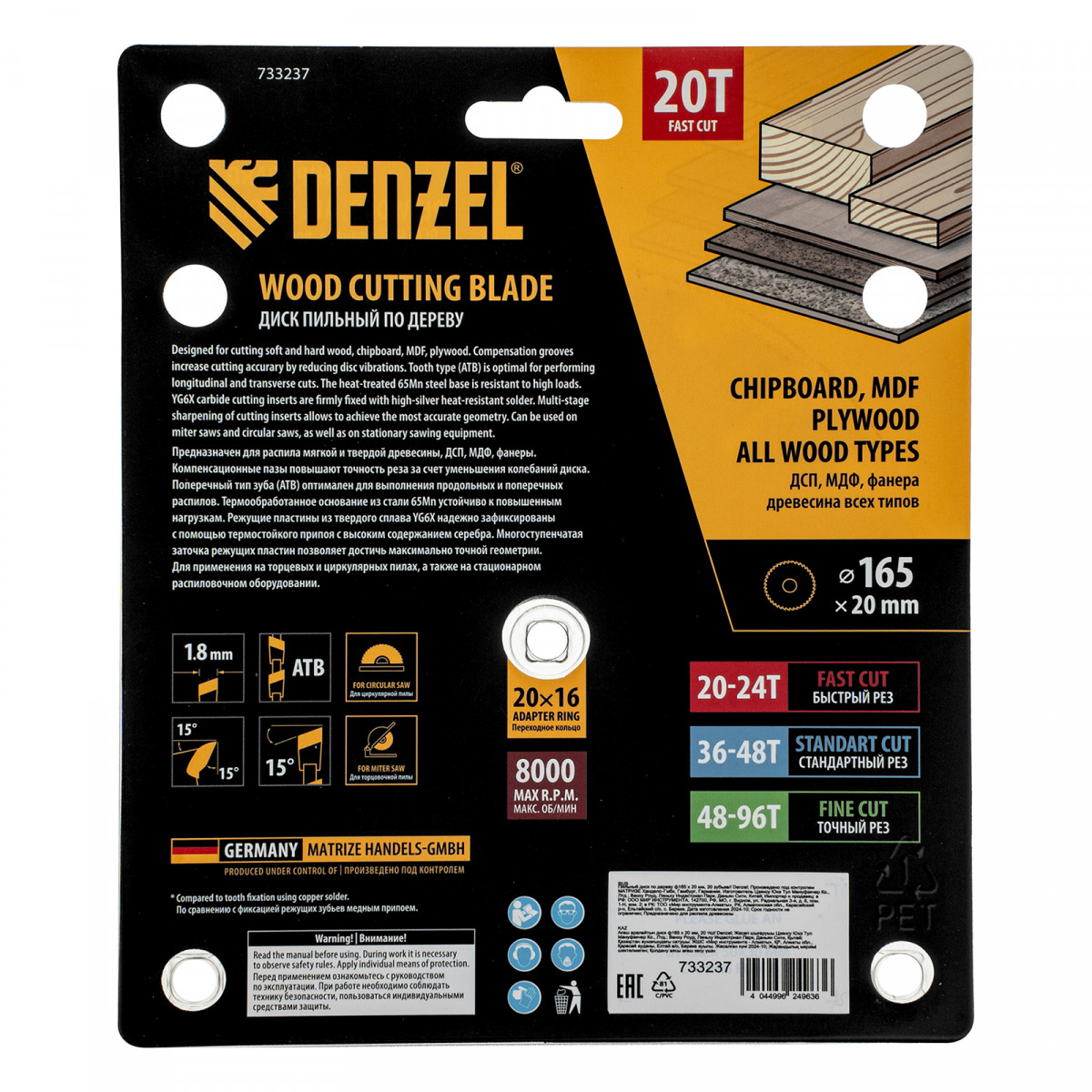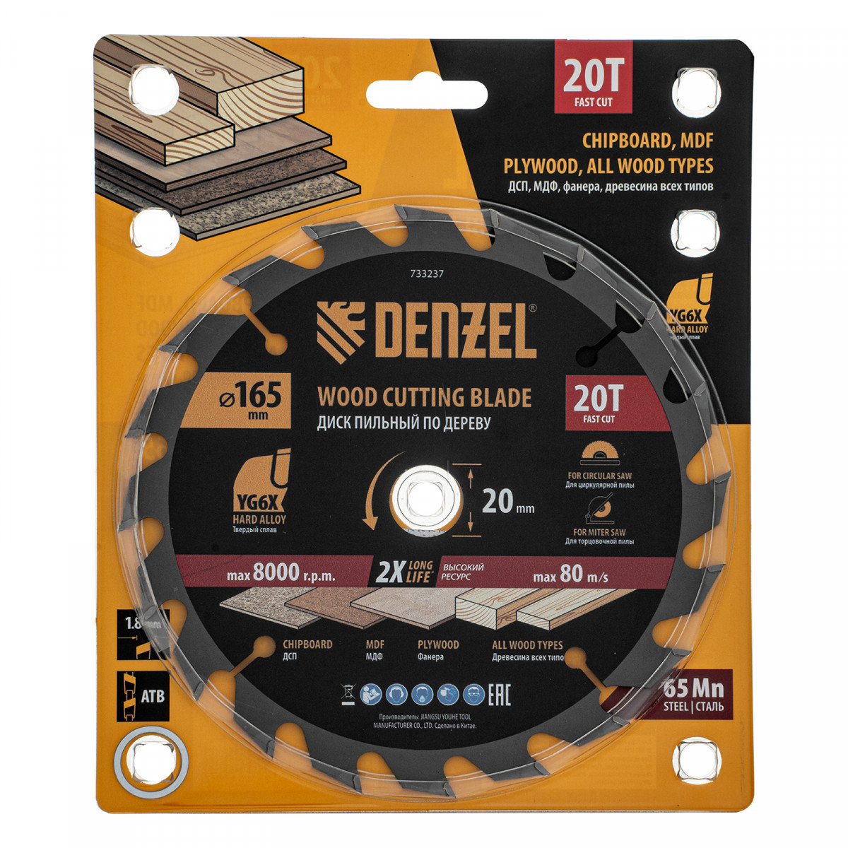 Пильный диск по дереву ф165 х 20 мм, 20 зубьев Denzel