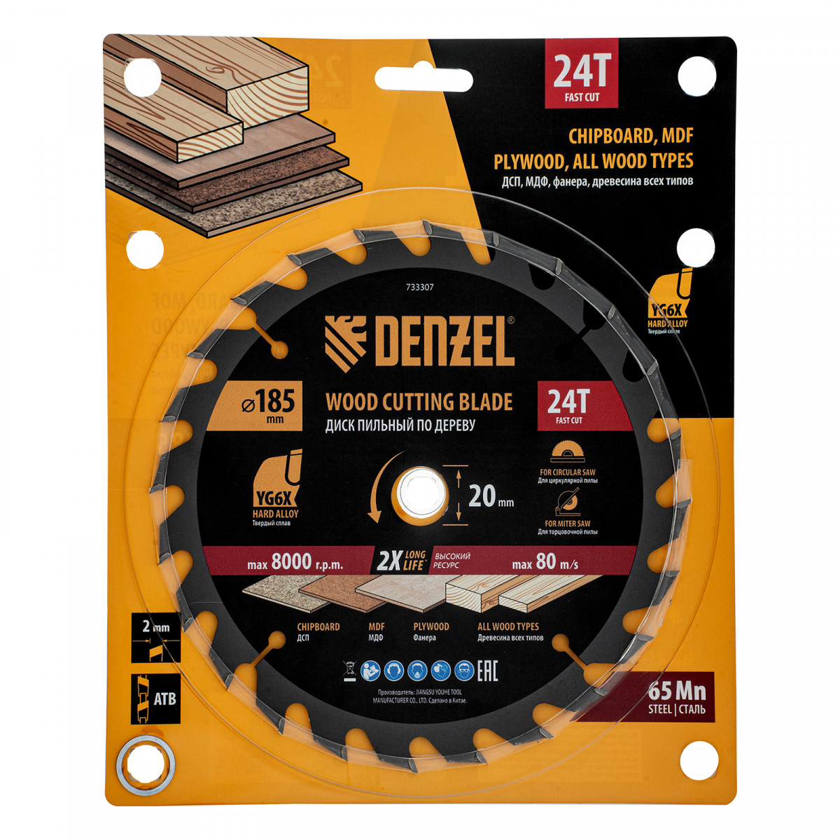 Пильный диск Denzel 733307 диаметром 185 x 20 мм, с 24 зубьями, предназначен для продольного и поперечного распила твердой и мягкой древесины, фанеры, МДФ, ДСП. 24 зуба типа ATB с режущими пластинами оптимальной геометрии обеспечивают быстрый рез. Режущие пластины из твердого сплава YG6X сохраняют рабочие свойства при интенсивном использовании. Диск устанавливается на циркулярную, торцовочную пилу или на распиловочный станок. В комплект поставки входит переходное кольцо с 20 на 16 мм, что позволяет изменить посадочный размер и расширяет возможности использования диска.