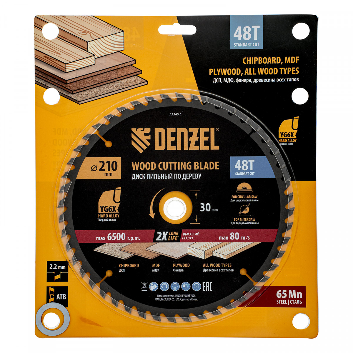 Пильный диск по дереву ф210 х 30 мм, 48 зубьев Denzel