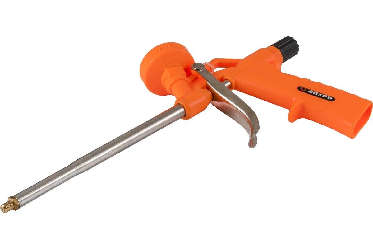 Пистолет для монтажной пены ВИХРЬ применяется в строительных и ремонтных работах. Незаменим при установке окон, дверей, кровли и прочих строительных конструкций, для работы в труднодоступных местах.С помощью инструмента можно легко выдавить монтажную пену из баллона. Объем потока пены можно регулировать, таким образом пистолет идеально подходит для точного, быстрого и безопасного заполнения щелей и пустот.