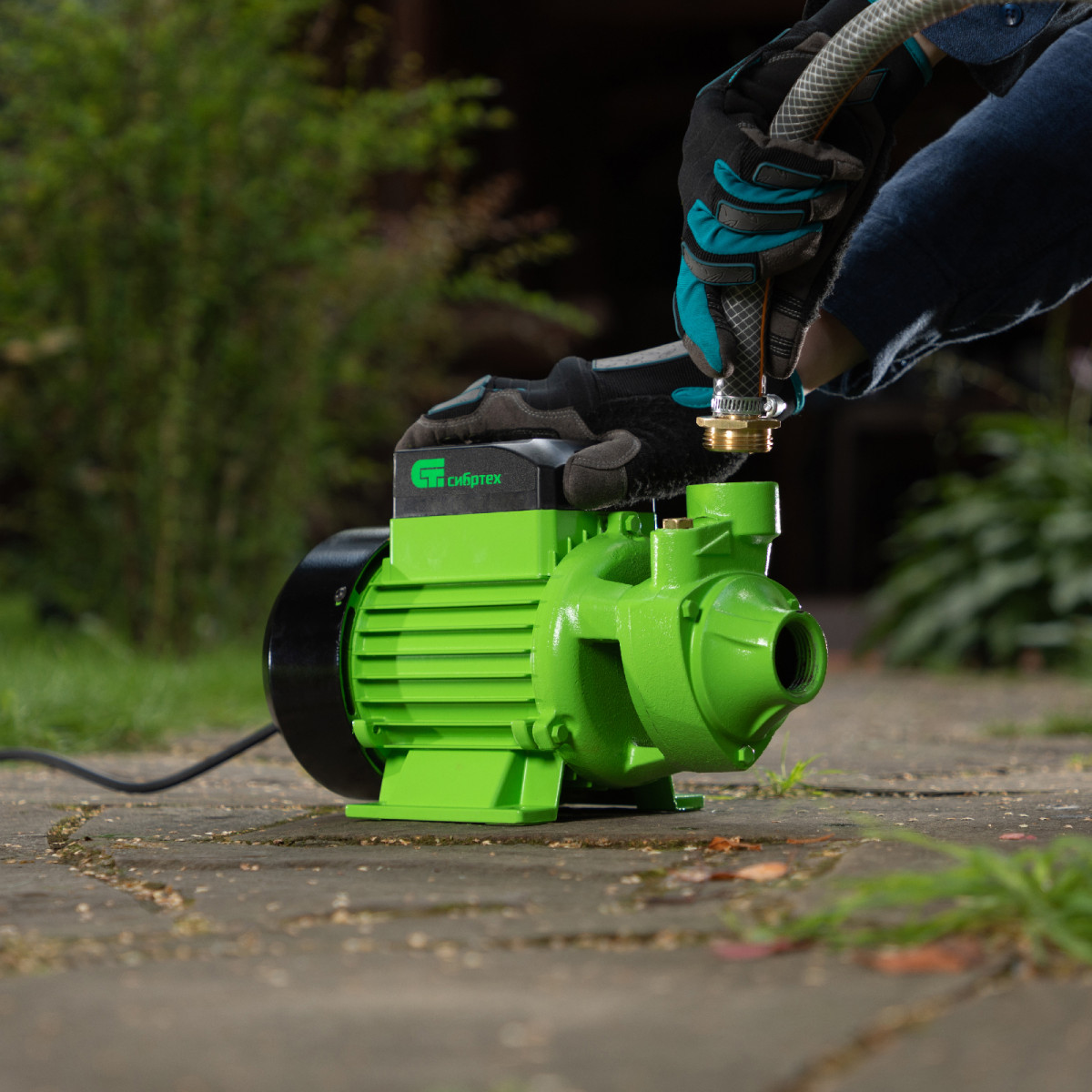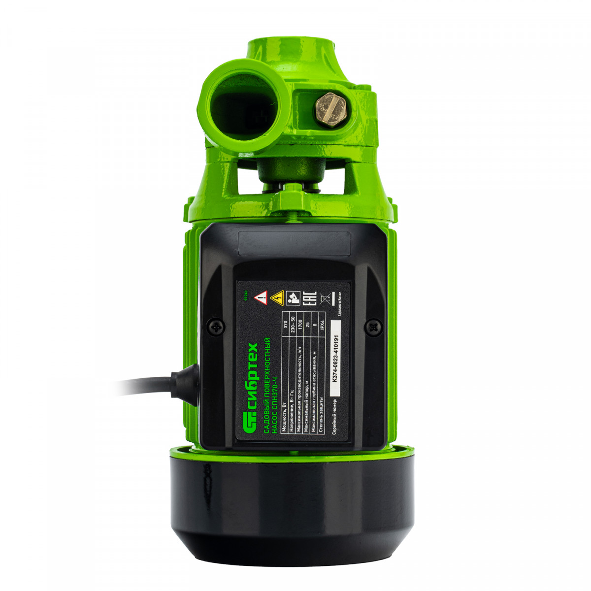 Садовый поверхностный насос Сибртех СПН370-Ч 97241 мощностью 370 Вт, с чугунным корпусом насосной части, осуществляет забор чистой воды со скоростью до 1700 л/ч с глубины до 8 м из водоемов, колодцев и резервуаров и обеспечивает напор до 25 м. Оптимален для организации систем полива и водоснабжения на даче. Создаваемого напора достаточно для подъема воды на верхние этажи частного дома без потери давления.