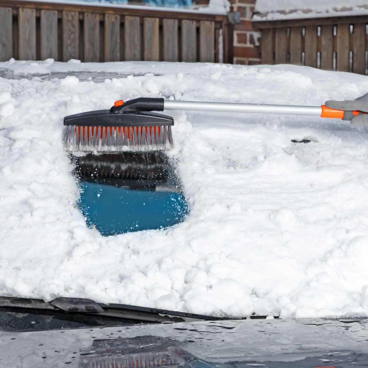 • Щетка-скребок имеет плотную щетину, распушенную на концах, поэтому эффективно убирает слой снега, не царапая поверхность кузова.