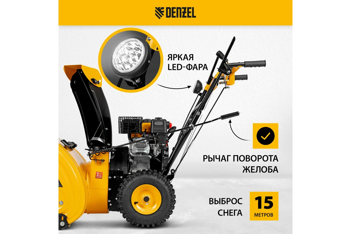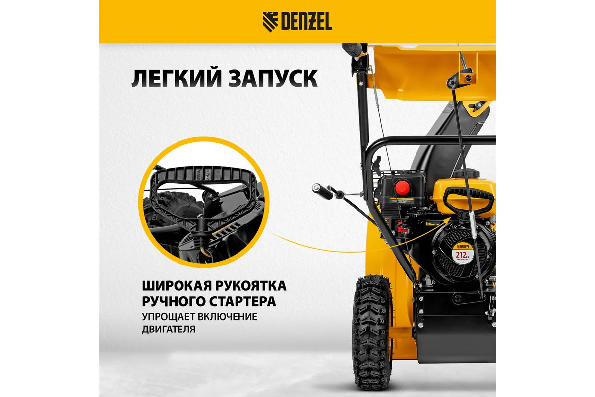 Бензиновая снегоуборочная машина Denzel SBM 610 97653 - оптимальный выбор для коммунальных служб и организаций. Предназначена для уборки территорий загородных домов, коттеджей, подъездных дорог и улиц СНТ, парковок и городских дворовых территорий. Ресурсный двигатель объемом 212 куб.см с высоким крутящим моментом, кожух шнека шириной 610 мм и высотой захвата 540 мм обеспечивают эффективную уборку больших сугробов с ледяной коркой. Снегоуборщик относится к самоходному типу с двухступенчатой системой забора снега. Яркая LED фара облегчает работу в темное время суток. Благодаря шинам с глубоким протектором исключается пробуксовка на обледенелой дороге.