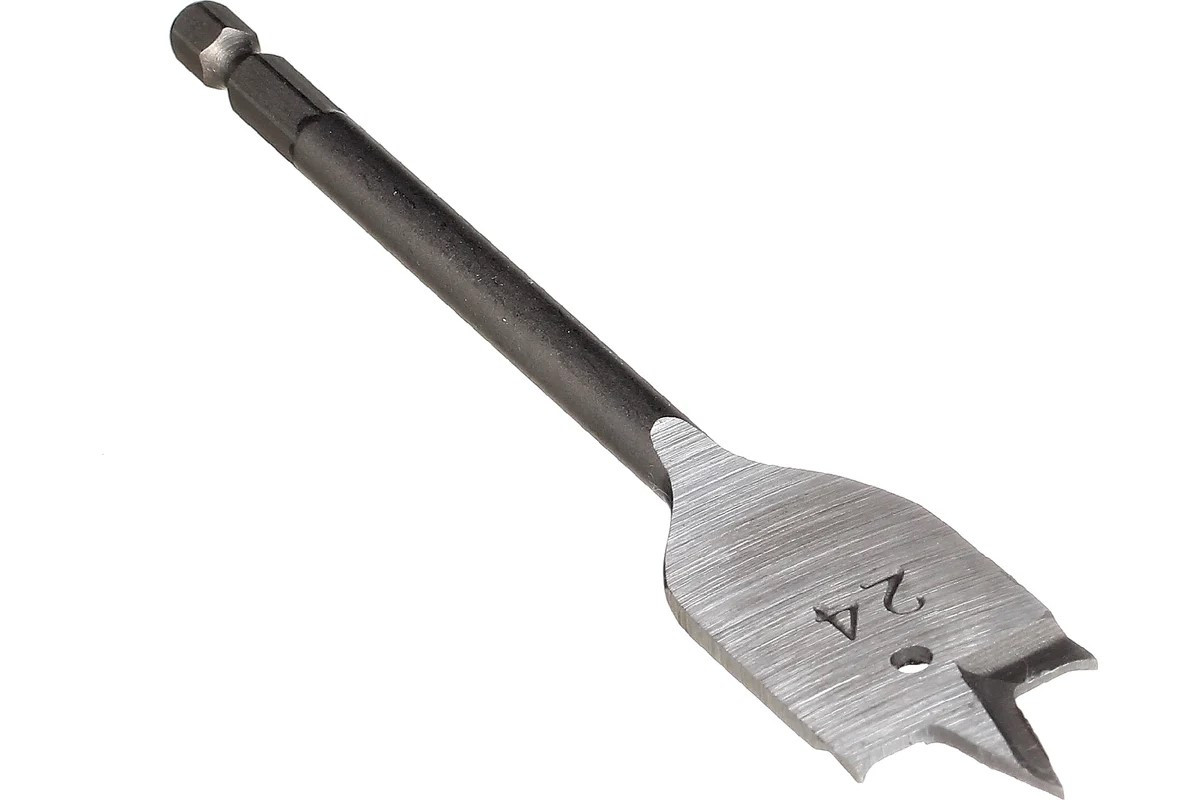 Перовое сверло по дереву, диаметр - 24 мм.Представляет собой режущий инструмент по дереву с заточенным центрированным резцом.Служит для работ по древесине твёрдых и мягких пород, ДСП, пластмассе, фанере и пр.Сверло выполнено из высококачественной инструментальной стали.Шестигранный хвостовик предотвращает проскальзывание сверла в патроне.