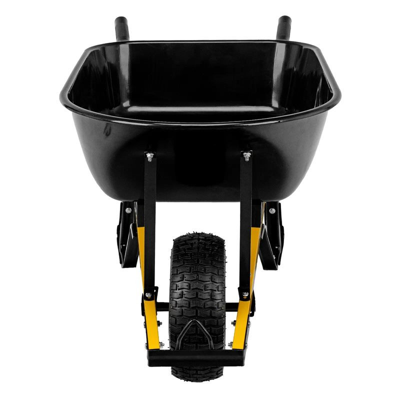 Усиленная строительная тачка с колесом 15 х 6,00-6, предназначена для профессионального использования на строительной площадке и в сельском хозяйстве. С ее помощью можно транспортировать строительные грузы и различные сыпучие материалы. Прочная конструкция — рама с профилем 50 х 25 мм и толщиной стенок 1,2 мм, а также широкие опоры, усиленная перемычка и мощная дуга выдерживают интенсивные нагрузки. Надежный кузов — завальцованные бортики повышают прочность и ударостойкость его верхней части. Защита от коррозии — кузов и рама покрыты порошковой эмалью. Устойчивость — тачка не проваливается в грунт благодаря широкому пневмоколесу и подпятникам на ножках. Возможность фронтальной разгрузки — на колесе предусмотрена специальная дуга для упора. Удобное перемещение — колесо установлено на два шариковых подшипника, что обеспечивает высокую проходимость тачки. Специальная петля на раме — возможна буксировка тачки вторым человеком при необходимости.