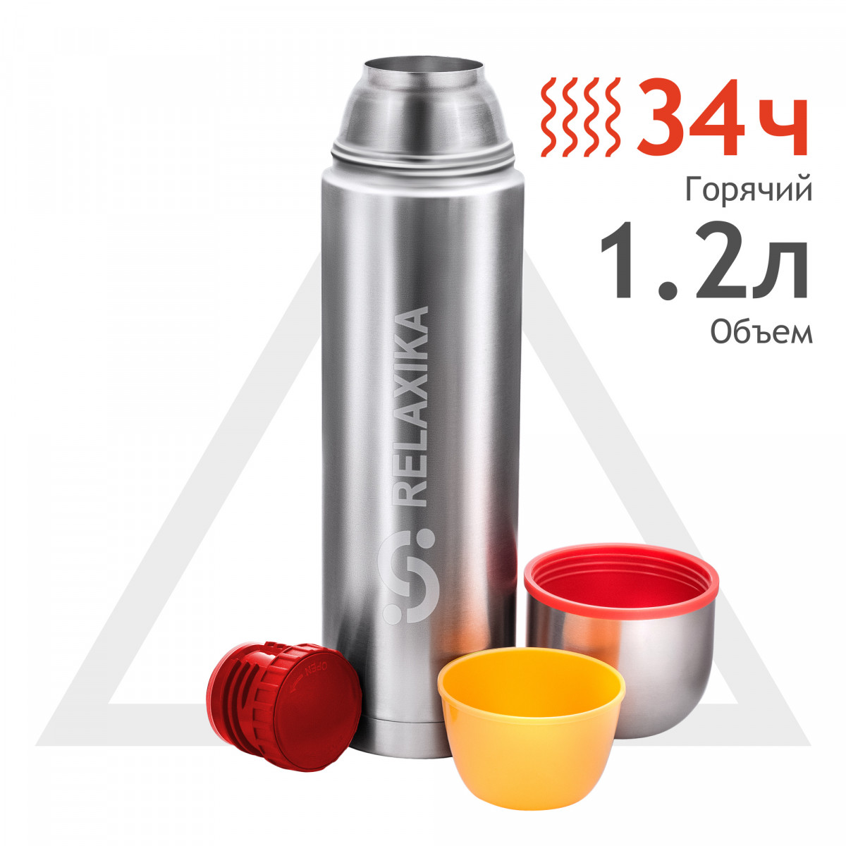 Термос Relaxika 102, 1.2 л, 2 чашки, стальной, R102.1200.1 представляет собой классическую модель, обладающую высокими показателями удержания температуры напитка.