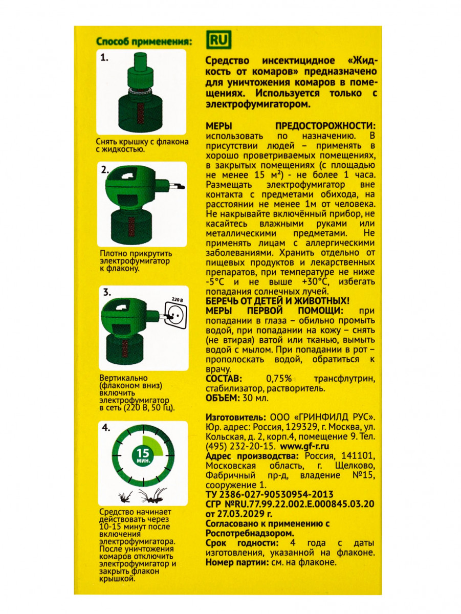 Жидкость от комаров без запаха 30мл/45ночей Тайга